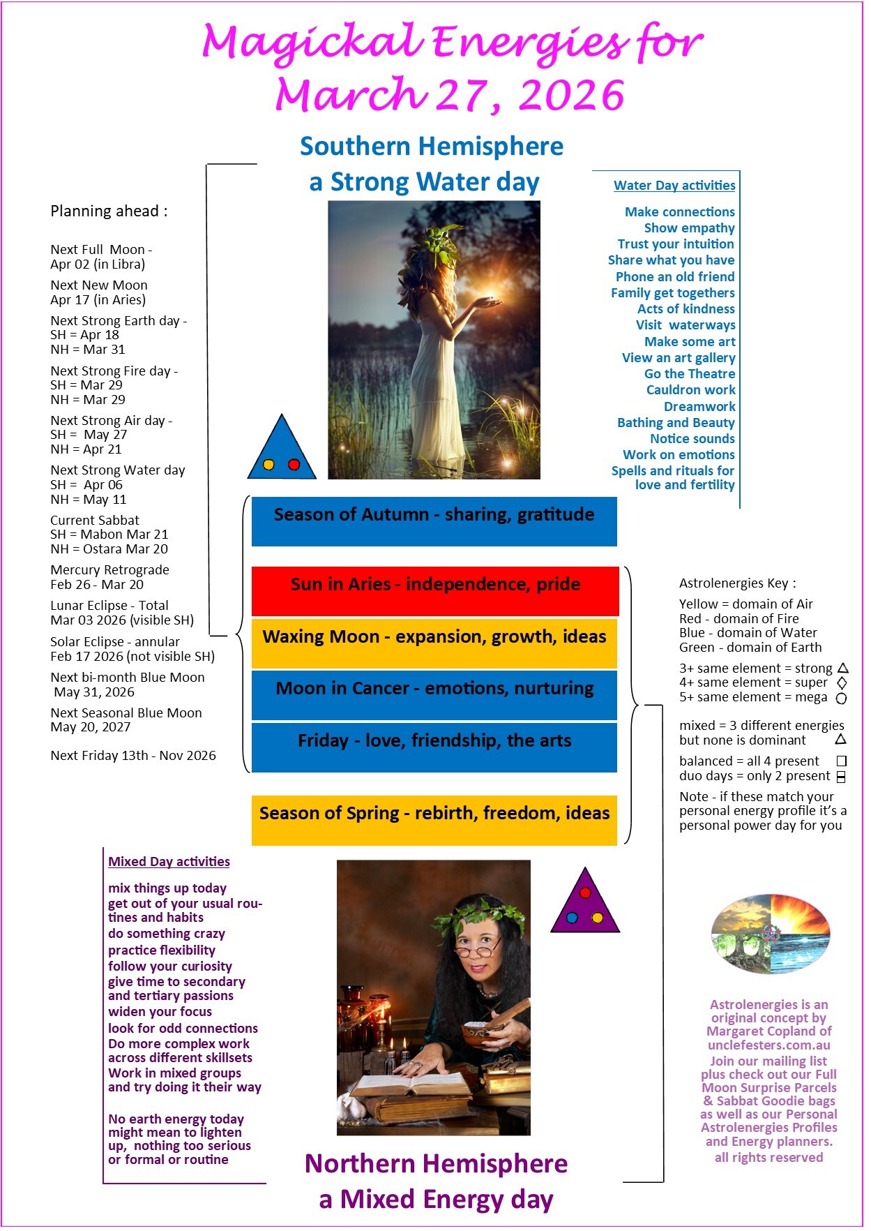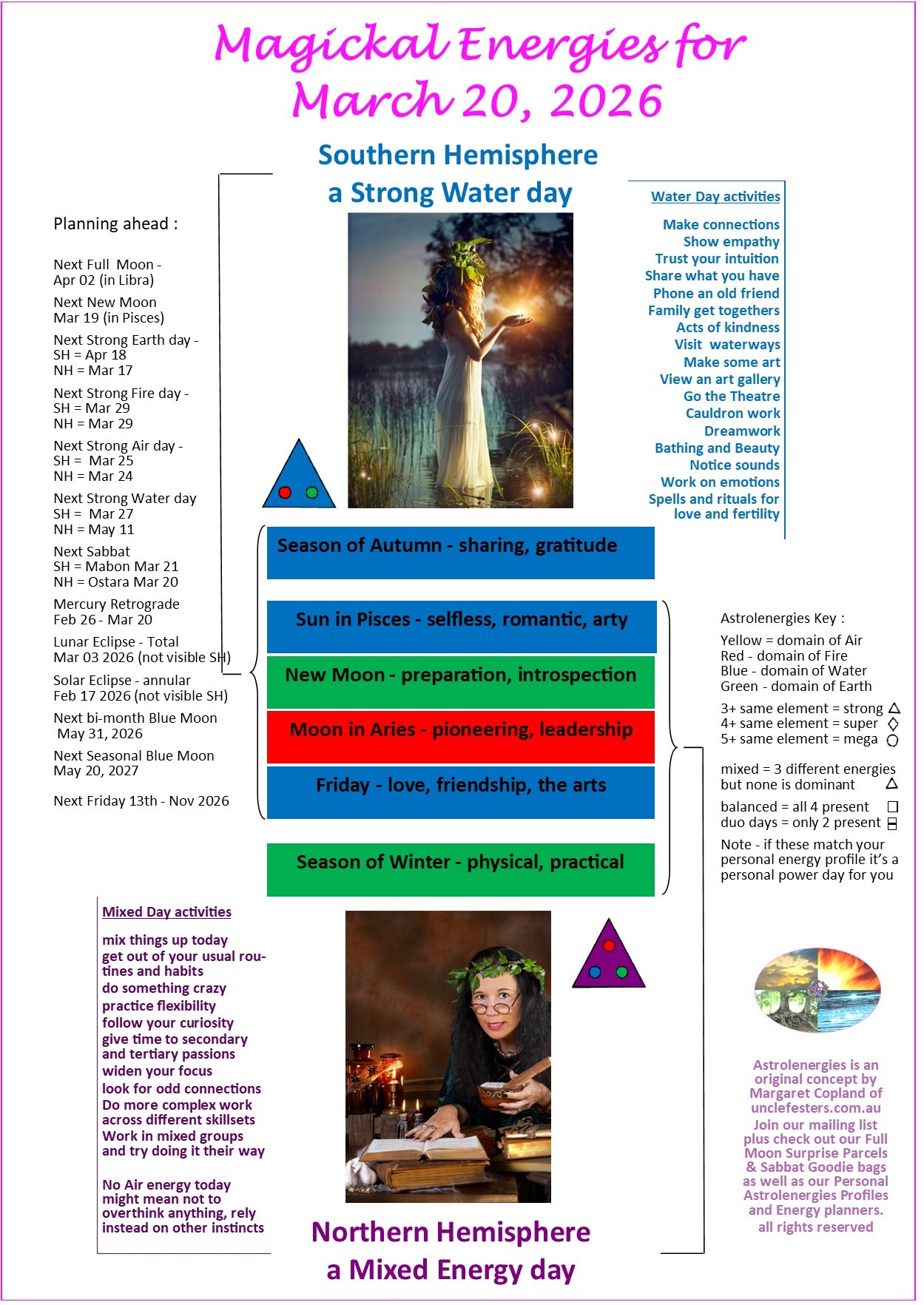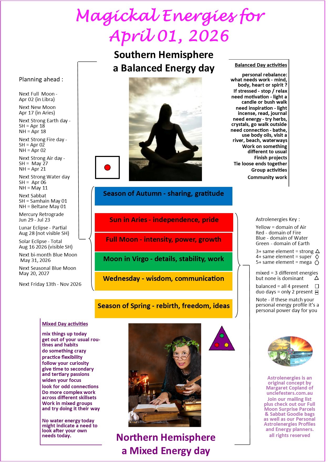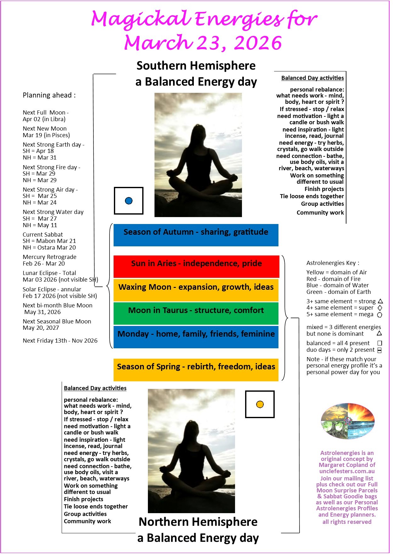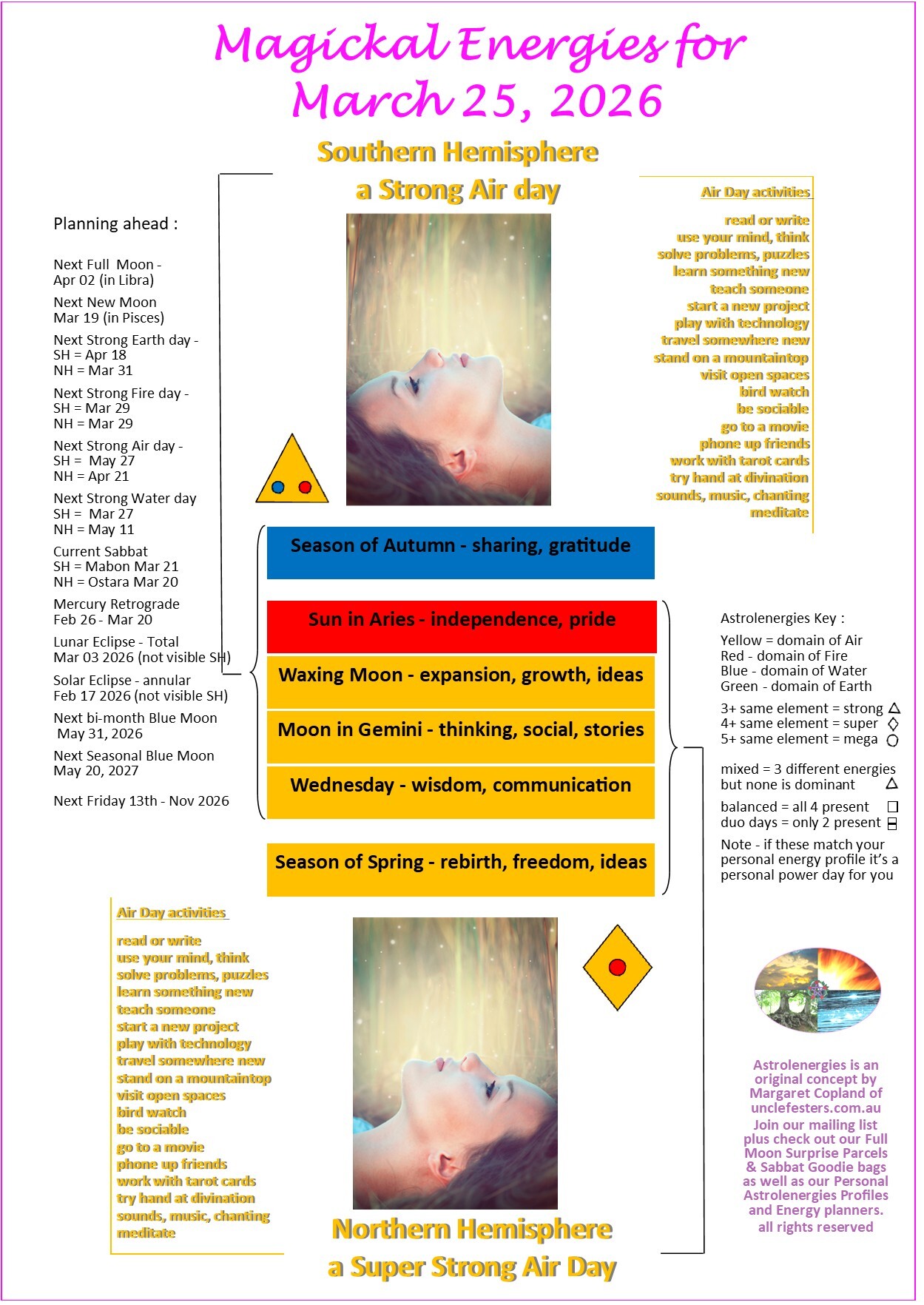 - she considers that each day (and each person) has an energy pattern - she calls "Astrolenergies"