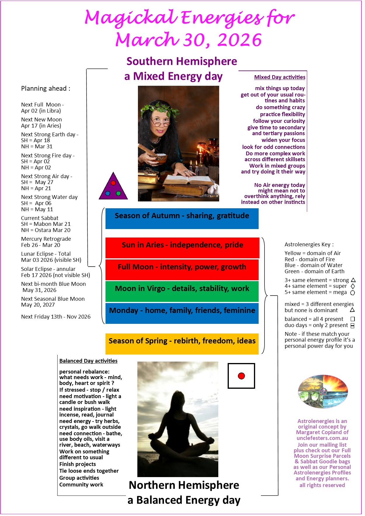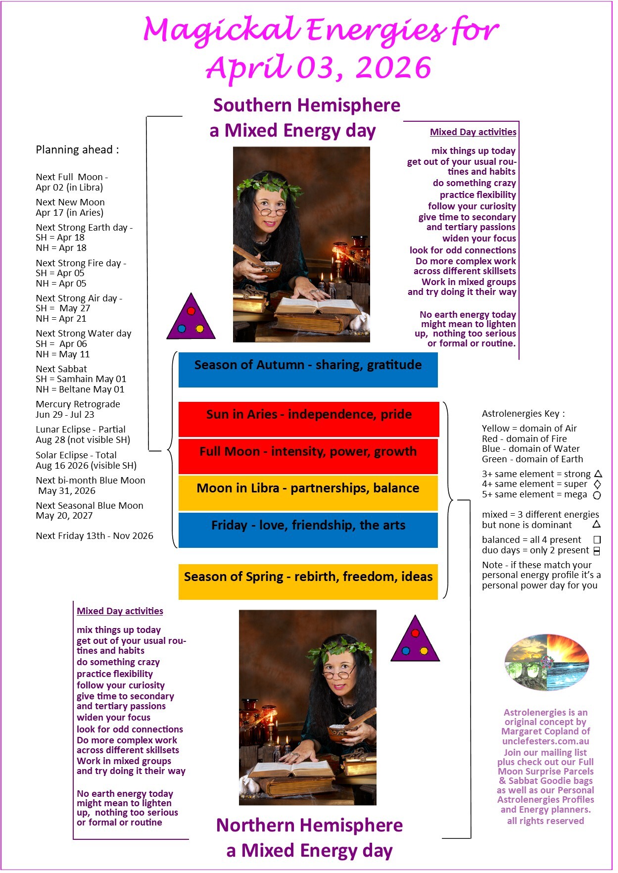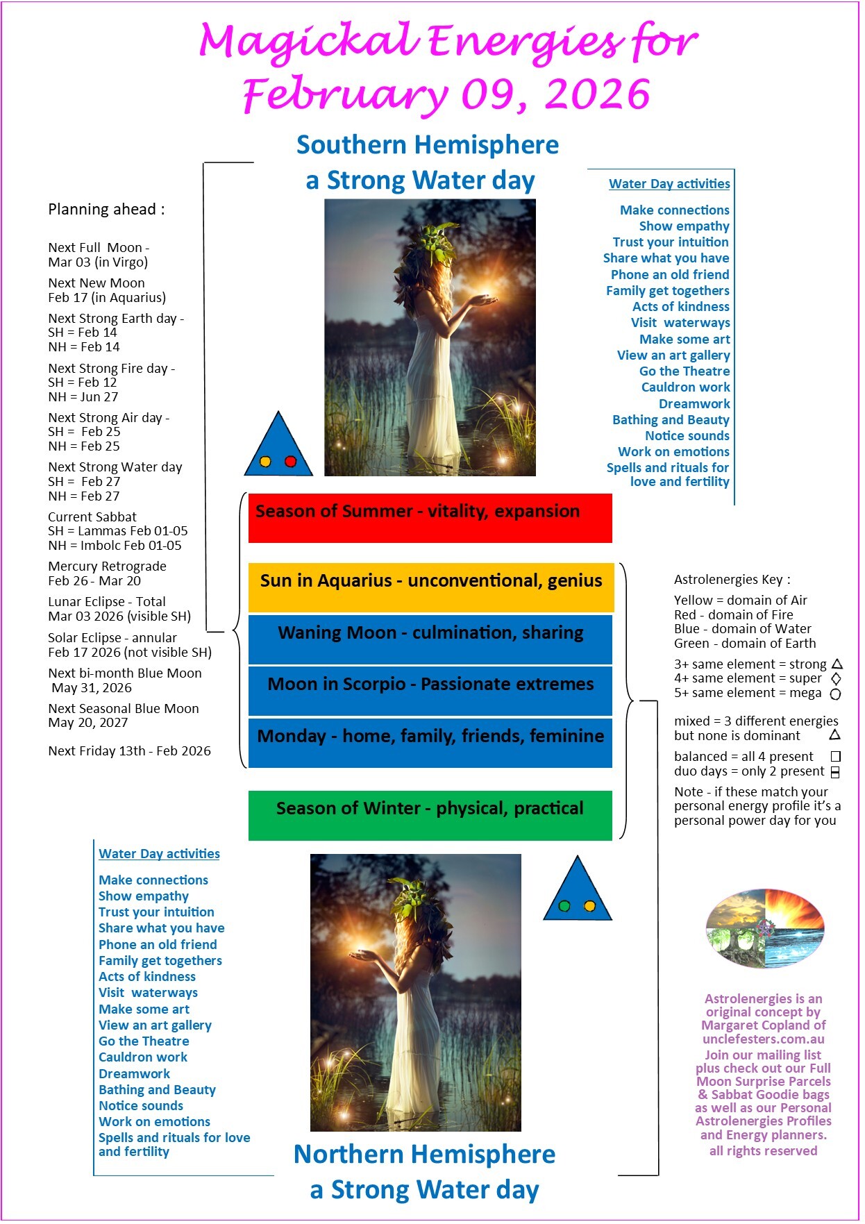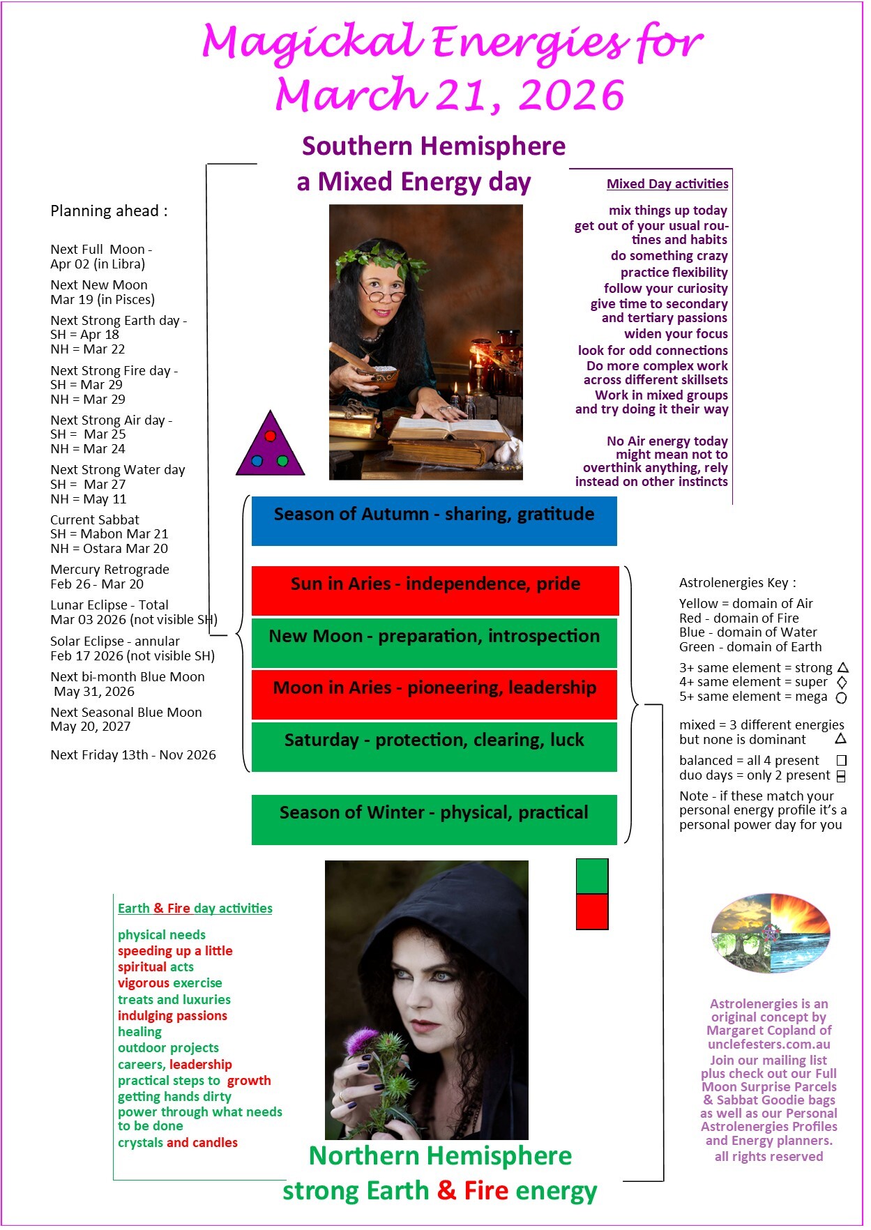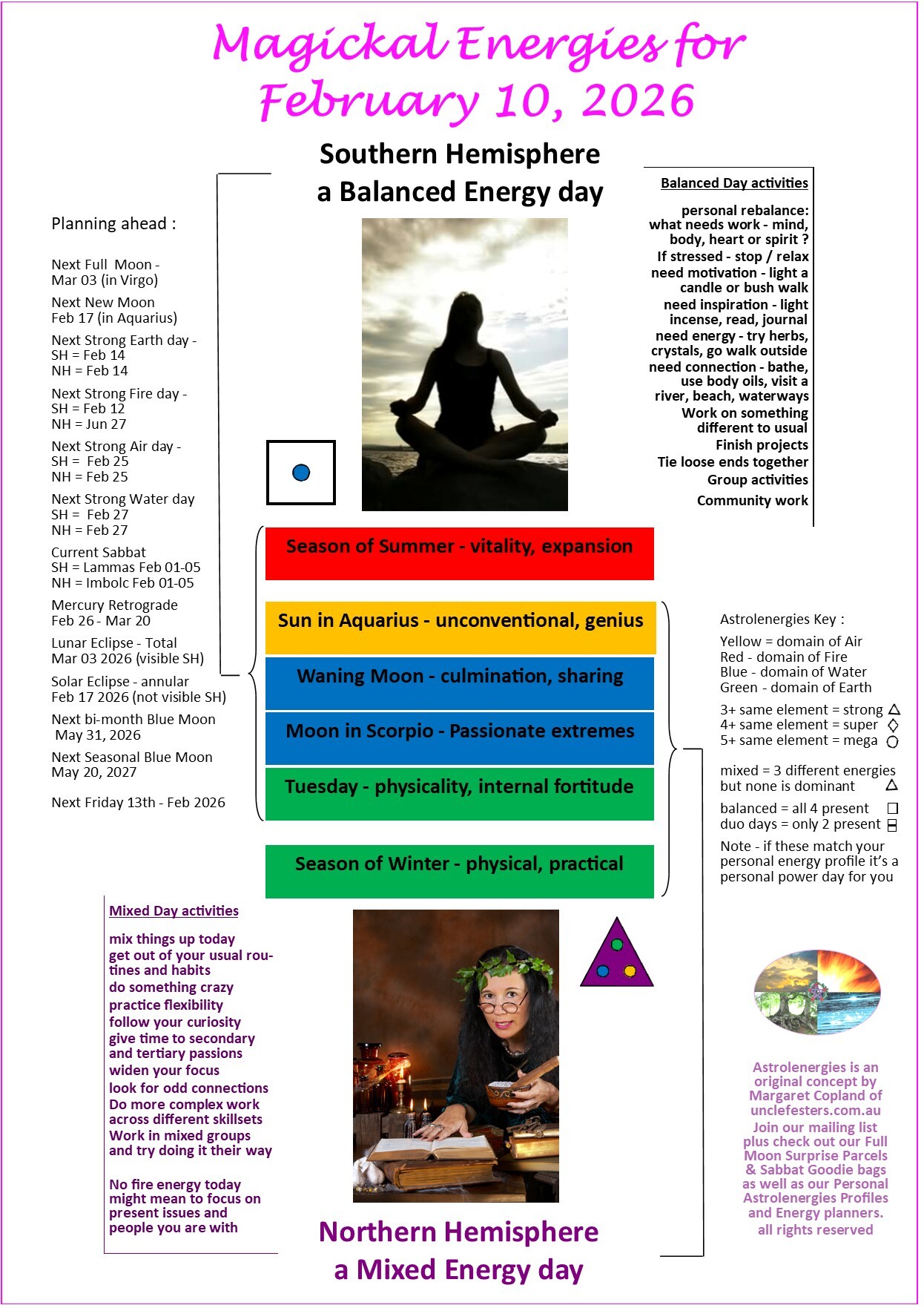 - she considers that each day (and each person) has an energy pattern - she calls "Astrolenergies"