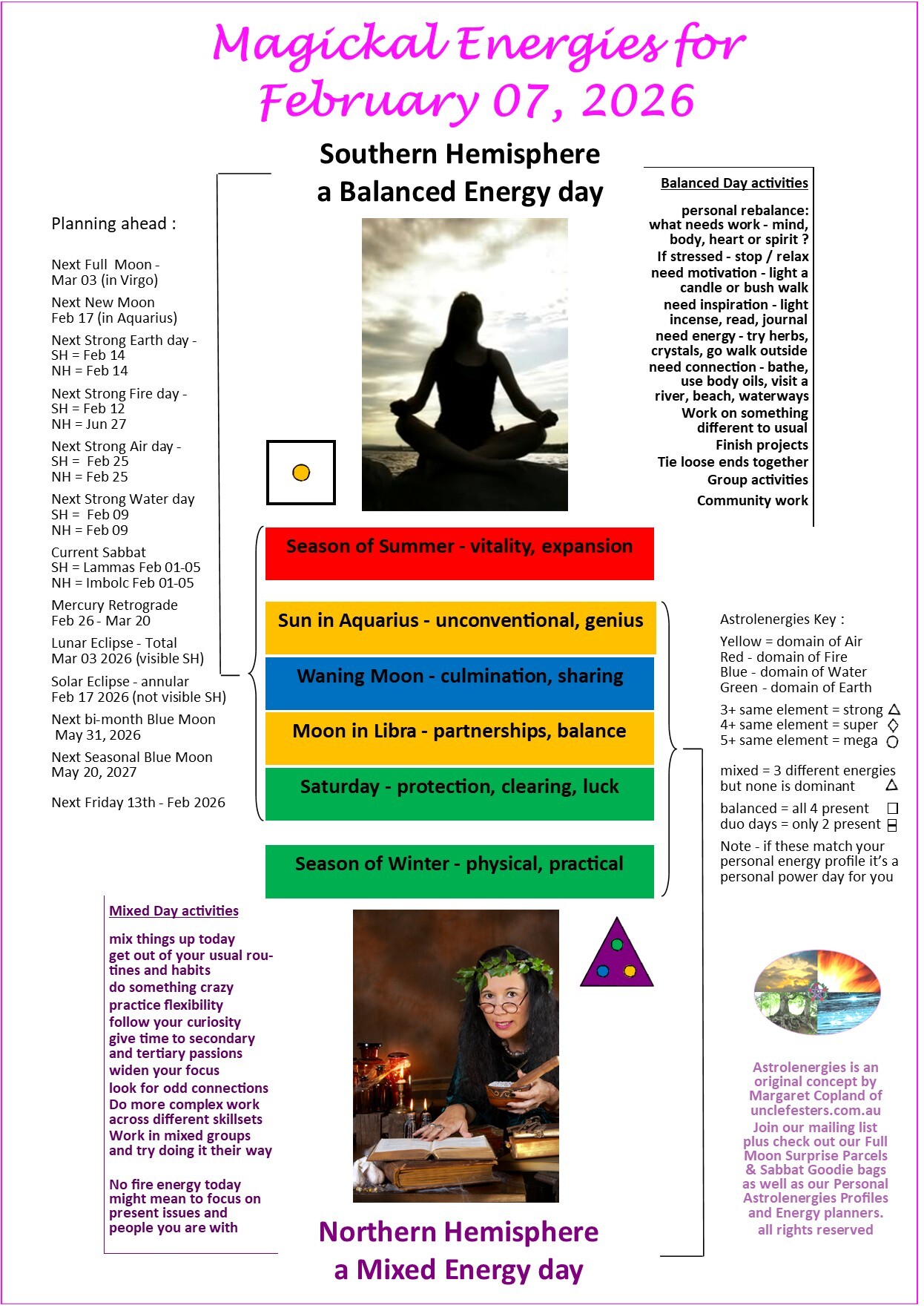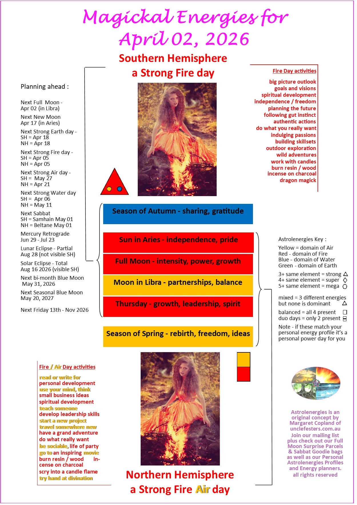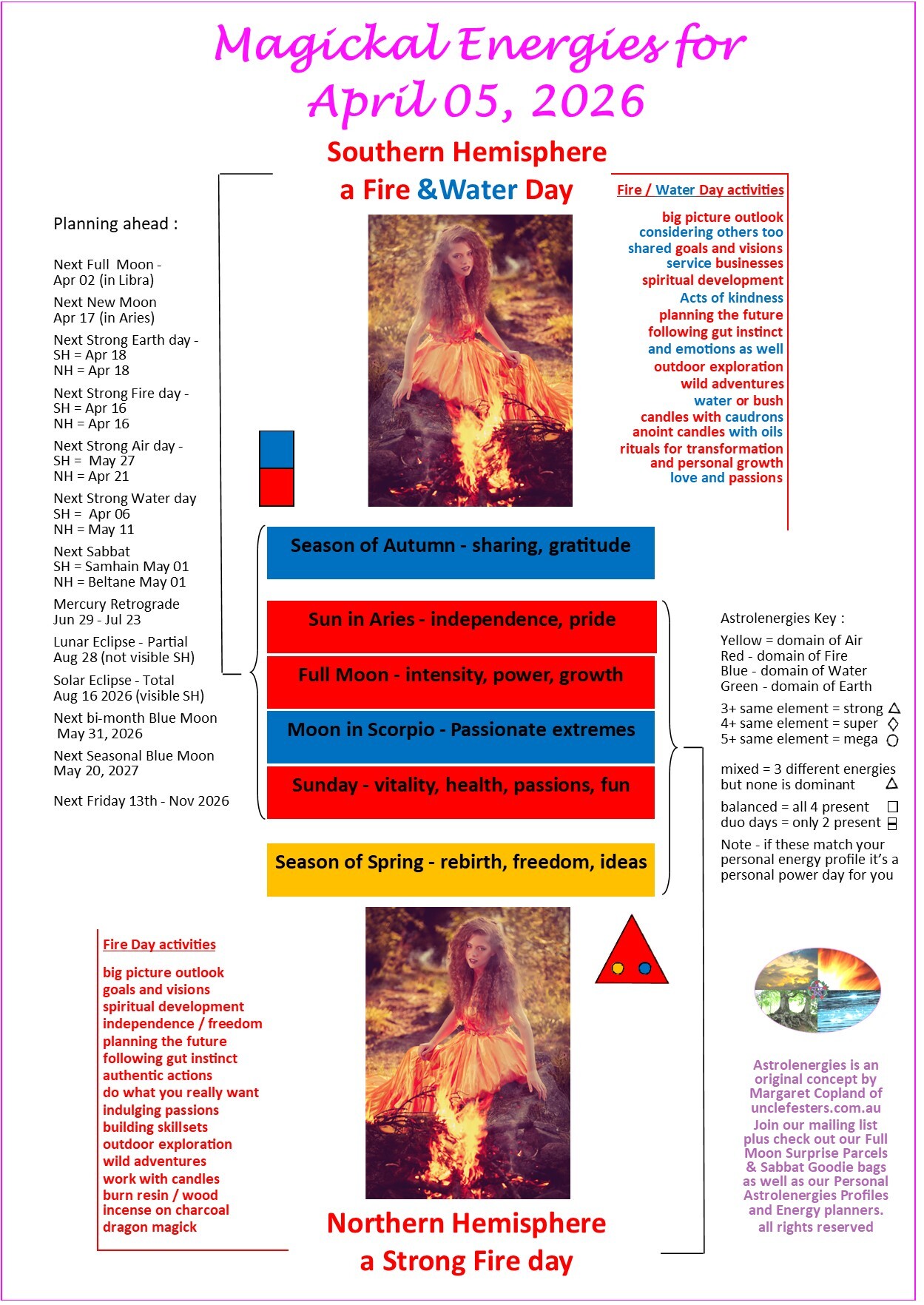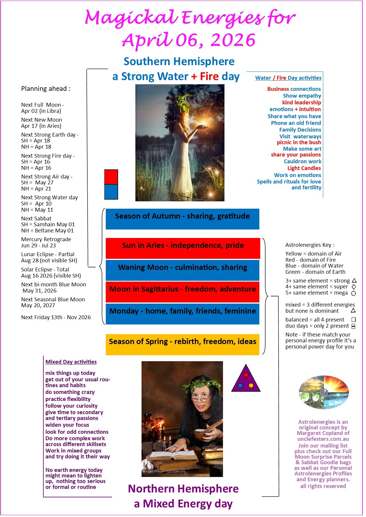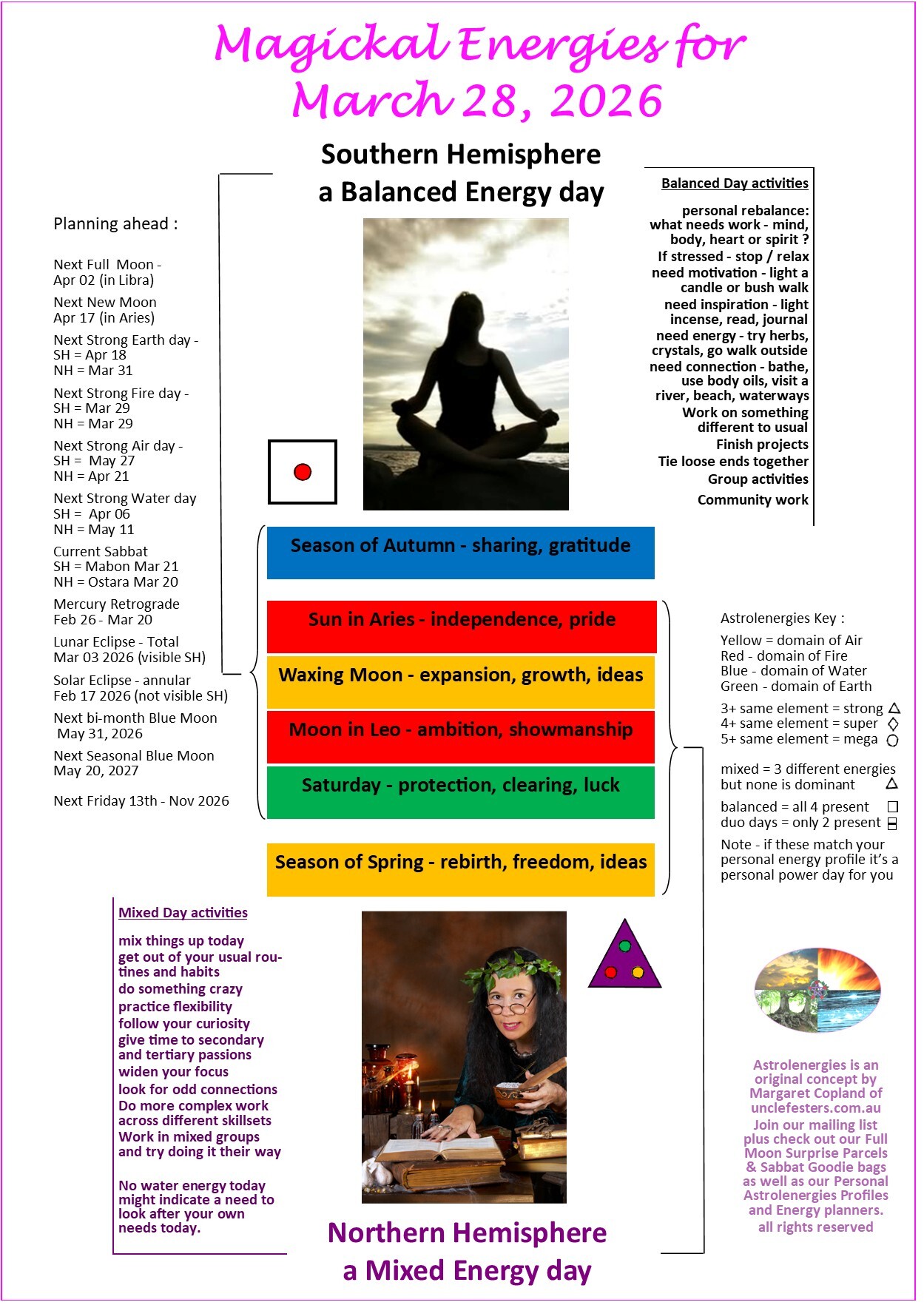 - she considers that each day (and each person) has an energy pattern - she calls "Astrolenergies"
